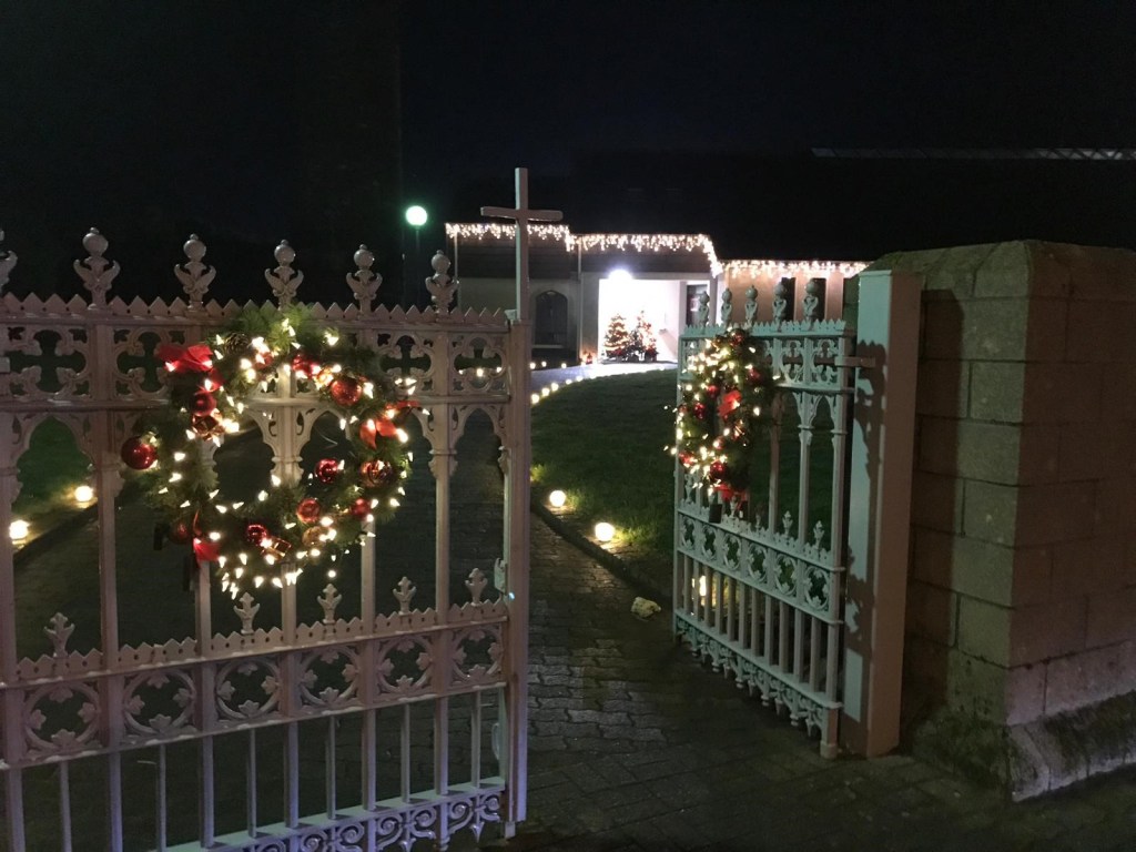 The Church is decorated with candles, flowers, Christmas lights and of course the Crib.