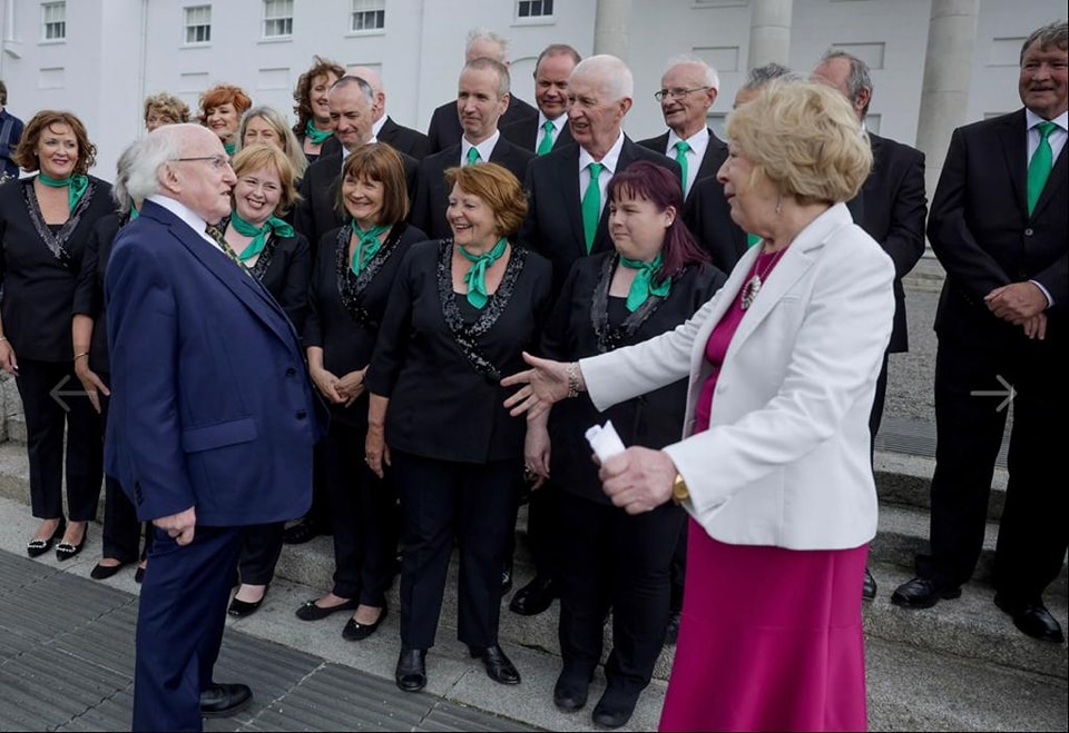 President Higgins, and the First Lady Sabina, gave us a lovely warm welcome, and they particularly loved our rendition of Danny Boy and of course, Toto’s Africa, which has become one of our signature pieces. We were treated like royalty, and served afternoon tea in the Áras Atrium, and then we had time to stroll around the magnificent gardens and house.