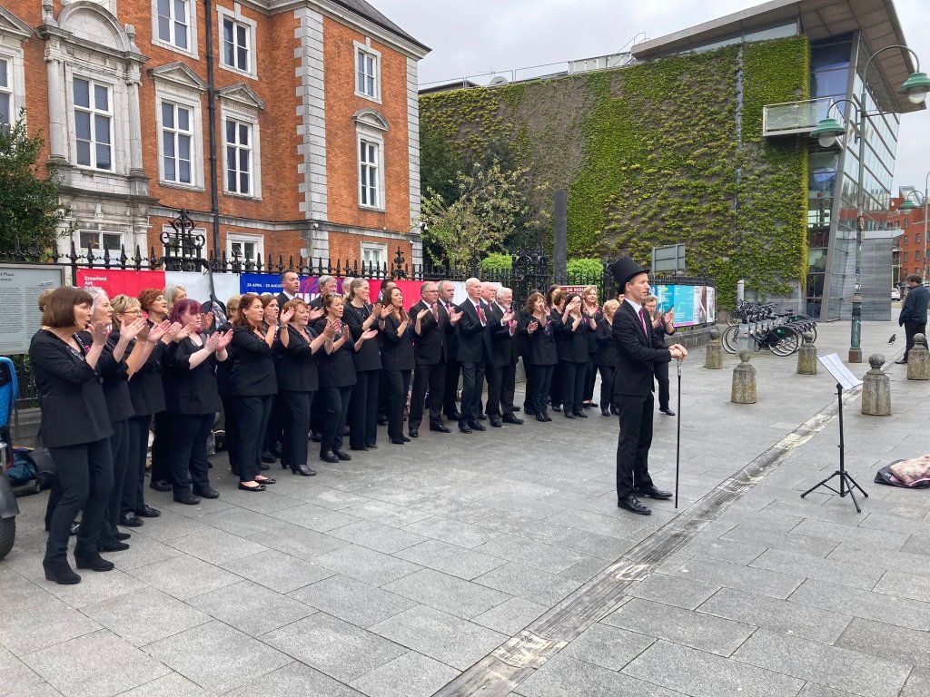 On April 29th, Cór Geal took part in one of the fringe events at the Cork Choral Festival. The choir performed a lively and varied repertoire in front of the Cork Opera House, Emmet Place, Cork City, which drew a large crowd of listeners.